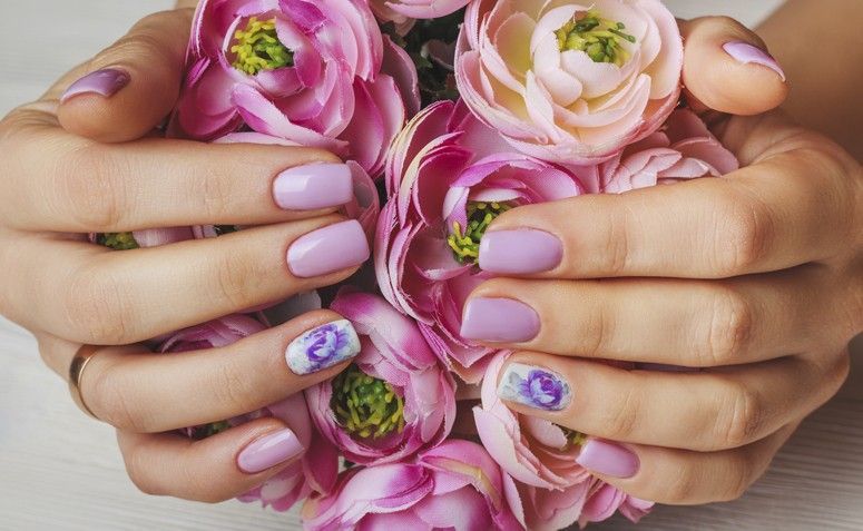 Depois de fazer os tracinhos brancos na pontinha das unhas e passar o esmalte clarinho, a dica é complementar com desenhos superfemininos, como flores delicadas. Para a decoração ficar ainda mais bonita, solte a criatividade e aplique strass, brilho, fimo e outros detalhes nas unhas.
